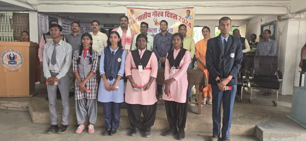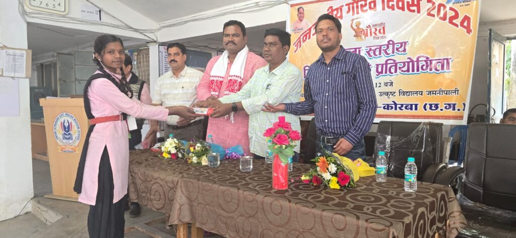 छत्तीसगढ़ जनजाति सलाहकार परिषद सदस्य व वनवासी कल्याण आश्रम कोरबा अध्यक्ष रघुराज सिंह उइके ने रंगोली प्रतियोगिता में प्रथम, द्वितीय बच्चों को पुरस्कृत किया गया। मुख्य अतिथि वनवासी कल्याण आश्रम कोरबा अध्यक्ष रघुराज सिंह उइके, विशिष्ट अतिथि जिला संयोजक जनजाति सुरक्षा मंच कोरबा पुष्पराज ठाकुर,वनवासी कल्याण आश्रम कोरबा सदस्य श्रवण यादव, दिलीप पटेल, दुर्गेश मरावी,जिला शिक्षा अधिकारी टीपी उपाध्याय, प्राचार्य अभिमन्यु साहू सहित बड़ी संख्या में शिक्षक-शिक्षिकाएं एवं छात्र छात्राएं उपस्थित रहे। कार्यक्रम के मुख्य अतिथि रघुराज सिंह उइके ने जनजाति समुदाय के संस्कृति कला की पहचान के बारे में बताया। साथ ही जनजातियों के कला, संस्कृत प्रथा, परंपरा के बारे में जानकारी दी। भगवान बिरसा मुंडा के बारे में उनके त्याग बलिदान साहस के बारे में आने वाले पीढ़ी को बताए।