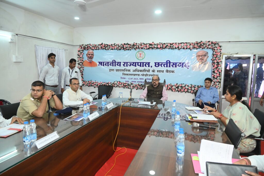 कोरबा। छत्तीसगढ़ के महामहिम राज्यपाल रामेन डेका ने शनिवार को कोरबा जिले में आकांक्षी ब्लॉक कोरबा और पोड़ी उपरोड़ा के विकासखंड स्तरीय अधिकारियों की बैठक लेकर आकांक्षी ब्लॉक के इंडिकेटर्स में निर्धारित बिंदुओं पर चर्चा की और स्वास्थ्य, शिक्षा सहित अन्य पैरामीटर्स में वृद्धि लाने के निर्देश दिए।