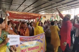 KORBA:NHM कर्मियों का आध्यात्मिक प्रदर्शन-हसदेव में जल सत्याग्रह, मनोकामना रैली,मॉं सर्वमङ्गला को चुनरी भेंट किए