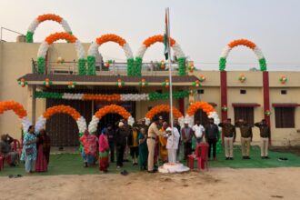 सर्वमङ्गला चौकी में वृद्ध भुपनारायण ने किया ध्वजारोहण