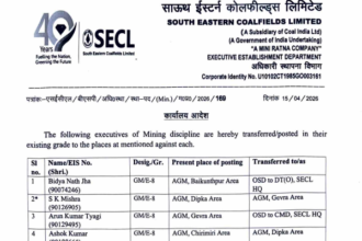 कोरबा। साउथ ईस्टर्न कोलफील्ड्स लिमिटेड (SECL) ने 47 अधिकारियों का तबादला आदेश…