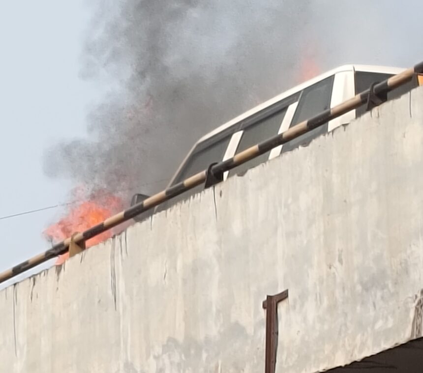 कोरबा। कोरबा शहर के भीतर से गुजरे ओवर ब्रिज पर अग्रसेन चौक के ऊपर एक स्कॉर्पियो में आग लगने की घटना हुई है। दोपहर करीब 3 बजे इस स्कॉर्पियो/बोलेरो (स्पष्ट नहीं) में आग लगी है जो विकराल रूप लेती जा रही है। इस मामले में कोतवाली पुलिस को सूचना दे दी गई है। टीआई मोतीलाल पटेल के साथ घटना स्थल पर पहुंचे हैं वहीं दमकल को भी सूचना दी गई है।