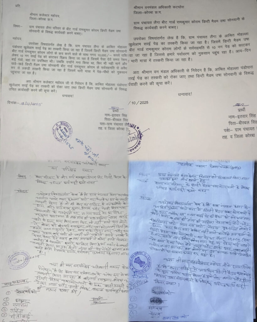 कोरबा। जिले के कटघोरा वन मण्डल के अंतर्गत आने वाले ग्राम पंचायत लैंगा के वन परिसर के बीट गार्ड रामकुमार कोराम व डिप्टी रेंजर उषा सोनवानी के विरूद्ध गम्भीर आरोप लगे हैं। कलेक्टर, डीएफओ से लगातार पत्राचार के बाद भी कोई कार्यवाही नहीं होने से पुनः शिकायत की गई है।
