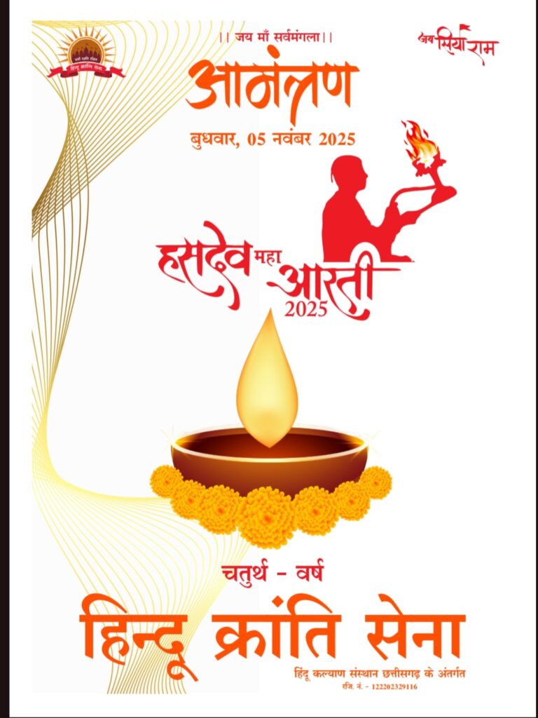 कोरबा। कोरबा जिले में जीवनदायिनी हसदेव नदी के तट पर लगातार चौथे वर्ष हसदेव महाआरती की तैयारी शुरू कर दी गई है। इस वर्ष यह भव्य और दिव्य आयोजन 5 नवम्बर, बुधवार को होगा जिसके लिए तैयारी होने लगी है। माँ सर्वमंगला मंदिर के सामने नदी घाट पर होने वाले आयोजन को लेकर बताया गया कि कार्तिक पूर्णिमा पर शाम 5 बज़े से देव दीपावली का यह आयोजन होगा। इस आयोजन का मुख्य आकर्षण में 11 हजार दीपों का प्रज्ज्वलन, 5100 दीपदान, 51 लीटर दूध से माँ हसदेव का दुग्धाभिषेक, माँ हसदेव को 51 मीटर चुनरी भेंट करने का होगा। बनारस काशी के ब्राम्हणो के द्वारा महाआरती इसे दिव्य और भव्य बनाएंगे। भव्य आतिशबाजी, भव्य साउंड एन्ड लाइट शो, लेजर लाइट शो का आकर्षण होगा। भजन संध्या, डमरू वादन दल की प्रस्तुति, भव्य झांकी, ब्राम्हणों द्वारा शंखनाद व फायर बॉल शो भी आकर्षित करेंगे।हिन्दू क्रांति सेना ने इस आयोजन में बढ़ -चढ़ कर सहयोग कर आयोजन को भव्यता और ऊंचाई देने की अपील नगरजनों से की है।