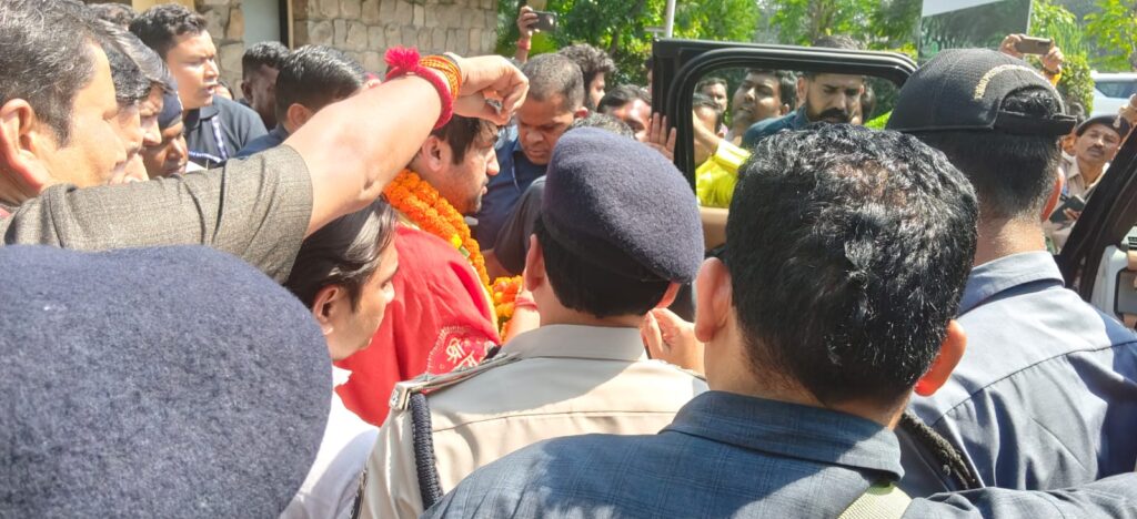 कथा वाचक पंडित धीरेंद्र कृष्ण शास्त्री शनिवार दोपहर 1 बजकर 45 मिनट पर रायगढ़ जिले के जिंदल एयरपोर्ट पर प्राइवेट जेट से पहुंचे, जहां आयोजकों और श्रद्धालुओं की बड़ी संख्या ने उनका भव्य स्वागत किया। एयरपोर्ट पर जय श्रीराम के गगनभेदी जयघोष, फूल-मालाओं और भक्तिमय उत्साह के बीच शास्त्री जी का स्वागत हुआ। इसके बाद उनका वाहनों का काफिला रायगढ़ से कोरबा के लिए रवाना हुआ। शाम लगभग 4 बजे कथा स्थल ढपढप पहुंचे। शास्त्री जी का हजारों श्रद्धालु आगमन की प्रतीक्षा में पलक-पांवड़े बिछाए बैठे रहे।