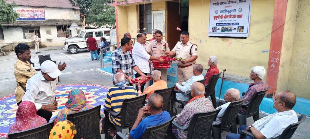 कोरबा। जिला पुलिस ने अपने सामाजिक सरोकारों के साथ दीपावली का त्यौहार मनाया। इस कड़ी में जिले के सर्वमंगला मंदिर के निकट स्थित प्रशांति वृद्धाश्रम में कुसमुण्डा थाना के अधीन सर्वमङ्गला पुलिस सहायता केन्द्र के द्वारा वृद्धजनों के साथ दीपावली की खुशियां बांटी गईं। इस अवसर पर दर्री नगर पुलिस अधीक्षक विमल पाठक, कुसमुंडा थाना प्रभारी निरीक्षक युवराज तिवारी और सर्वमंगला चौकी प्रभारी एएसआई विभव तिवारी ने वृद्धजनों को उपहार भेंट कर आशीर्वाद लिए।