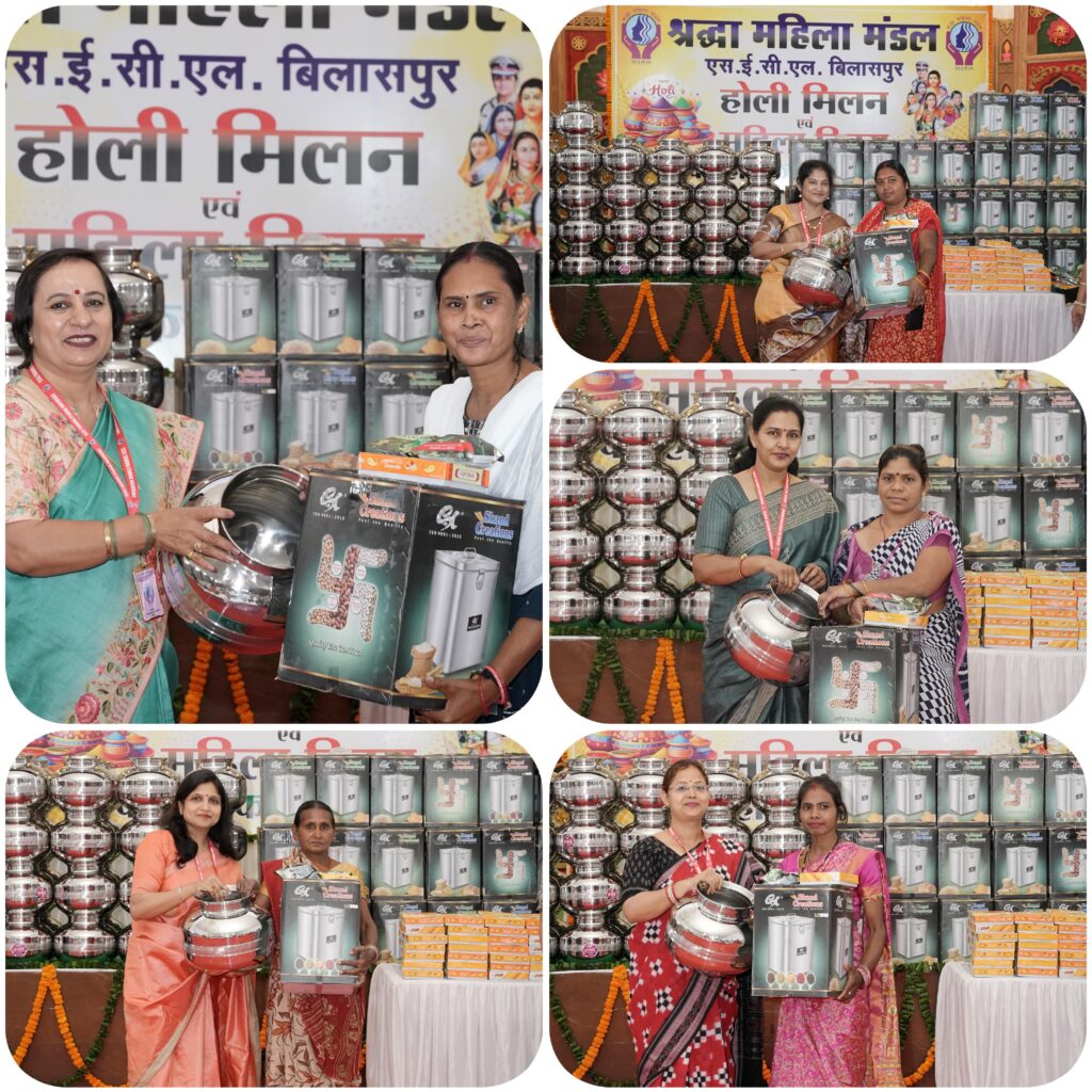 बिलासपुर। श्रद्धा महिला मंडल द्वारा को वसंत विहार के रवीन्द्र भवन में एसईसीएल की महिला संविदा कर्मियों के साथ होली मिलन एवं महिला दिवस समारोह बड़े हर्षोल्लास के साथ मनाया गया। यह कार्यक्रम श्रद्धा महिला मंडल की अध्यक्षा श्रीमती शशि दुहन जी एवं उपाध्यक्षा गणों के मार्गदर्शन में आयोजित किया गया।