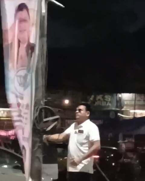 सीएसईबी जैन चौक पर गोलाकार लगाए गए विकास महतो के जन्मदिन वाले बधाई बोर्ड तथा सीएसईबी चौक व बुधवारी बाजार से घंटाघर की ओर जाने वाले मार्ग पर बिजली के खम्बों में लगे मंत्री लखन लाल देवांगन के बधाई संदेशों के पोस्टर बैनर को यह युवक हाथ में लाठी लेकर एकाएक फाड़ने और तोड़ने लग गया। विकास महतो के बोर्ड को हटाकर पास में ही एक दुकान के किनारे रख दिया और पोस्टर को फाड़ने लगा।