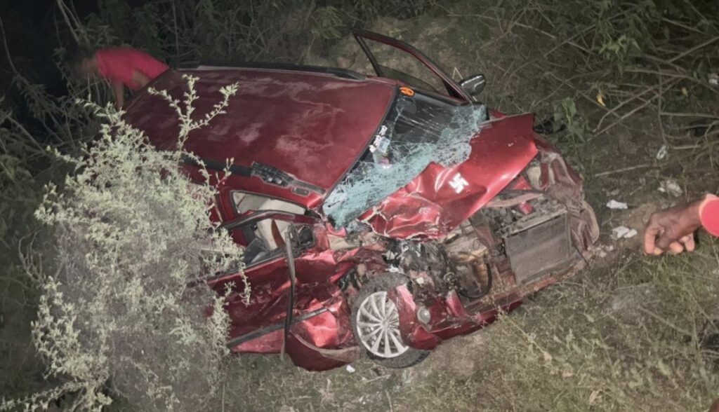 हादसे की जानकारी मिलते ही मौके पर पुलिस पहुंची। स्थानीय लोगों की मदद से कार में फंसे चारों लोगों को बाहर निकाला गया।